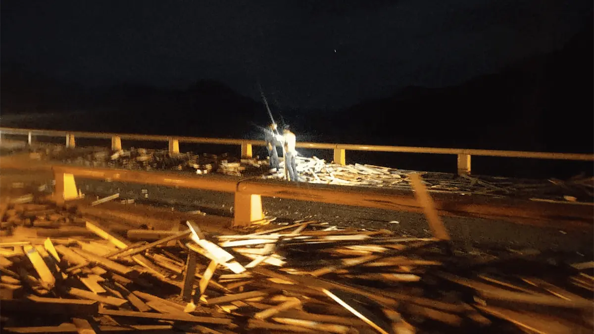 La carretera se mantuvo cerrada por horas mientras la madera era retirada del lugar.