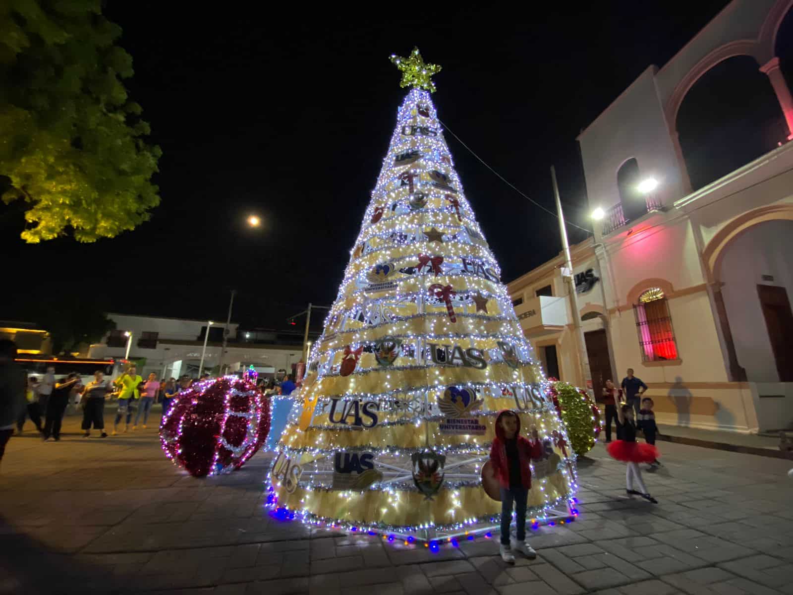 La Universidad Autónoma de Sinaloa encendió sus cinco pinitos de Navidad en los diferentes municipios del estado la tarde de este martes, dándole la bienvenida a la época decembrina.