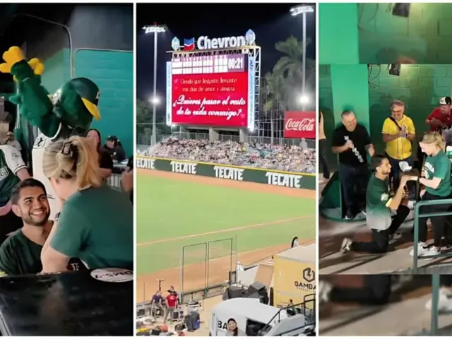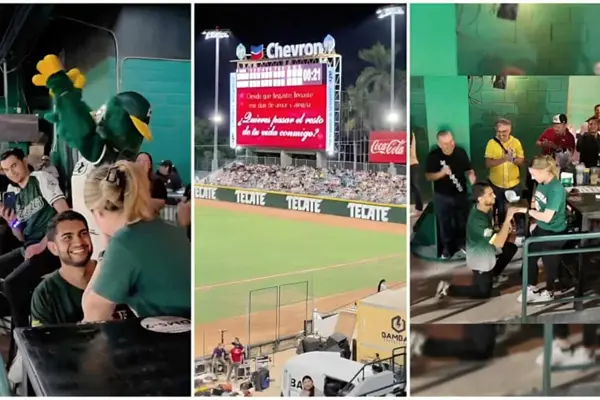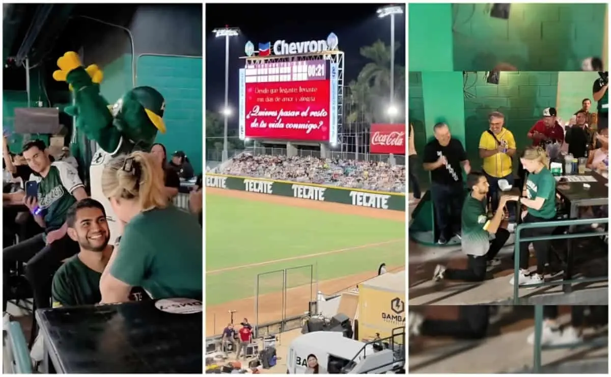 Alan, aficionado de hueso colorado de los Cañeros de Los Mochis, eligió el escenario perfecto para pedirle matrimonio a su novia Miriam, ¡y lo hizo ante miles de testigos!